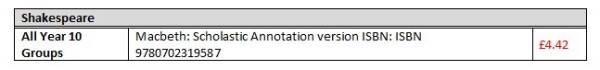 As part of your child’s English literature study, they must complete a study of an entire Shakespeare text; this year, all of Year 10 will be studying ‘Macbeth’ and will begin this study when we return to school in January. Your child may find it beneficial to have their own copy of the text to annotate and revise from.