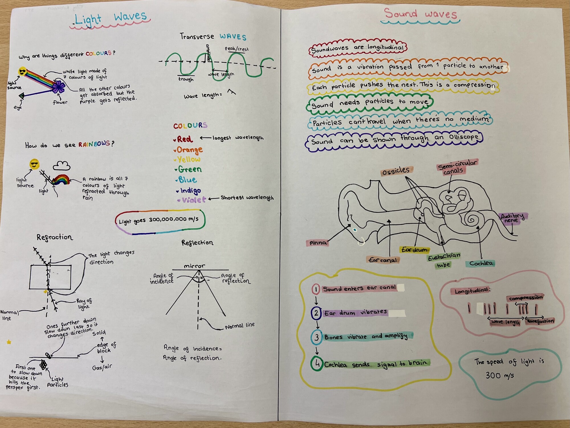 8P1 have been working extremely hard in Science and have recently completed their topic on Waves. To showcase their learning, students were challenged to create a summary of light waves and sound waves.