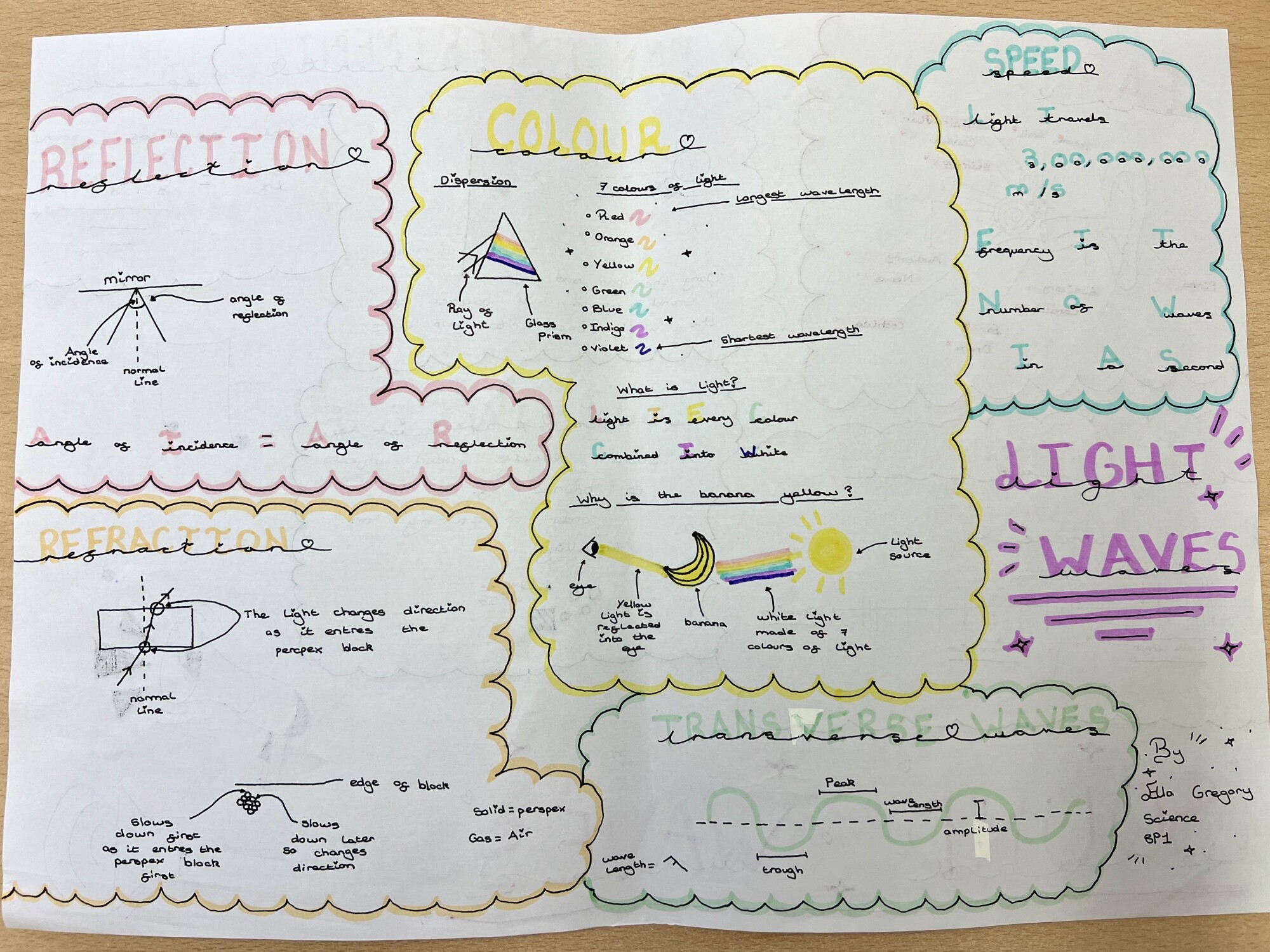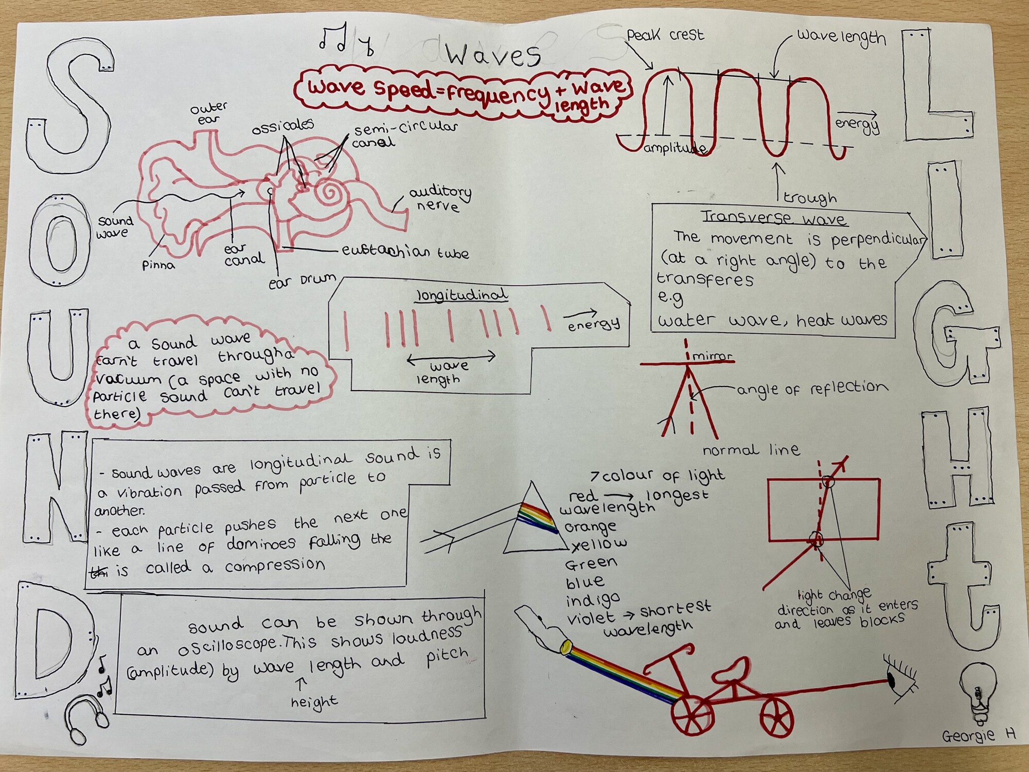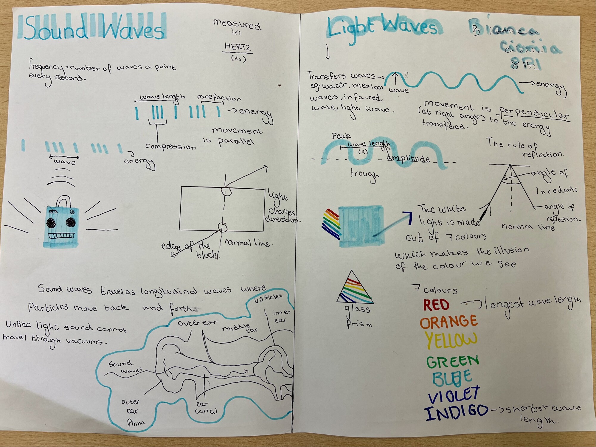 8P1 have been working extremely hard in Science and have recently completed their topic on Waves. To showcase their learning, students were challenged to create a summary of light waves and sound waves.